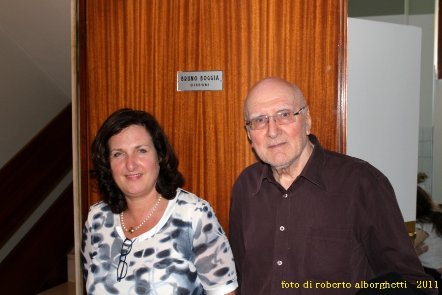 Oggi, come sempre, Bruno Boggia ama scoprire e confrontarsi con nuove idee e sperimentazioni. E’ in contatto anche con artisti e pittori, ai quali vengono offerte opportunità di espressione e di impegno. E con Bruno Boggia è stato facile, anche per me, entrare in sintonia con le mie “LaceR/Azioni”. Nel vedere alcuni dei miei artworks riprodotti sull’album-portfolio edito da Velar o sullo schermo di un computer, mi confida apertamente che gli piacciono e che apprezza l’idea attraverso la quale sono “prodotti”. Del resto, egli stesso è attratto e affascinato dalle forme astratte e dalle vibrazioni coloristiche emanate dal mix delle tinte. Mi confida che, armato della sua fotocamera digitale, non perde mai occasione per catturare dettagli e particolari delle cose che ci girano intorno. E me li mostra facendo scorrere i soggetti sullo schermo della sua Canon digitale. Sono immagini delle trasparenze del vetro di una bottiglia d’acqua, dei fori degli altoparlanti di uno schermo tv, delle nervature della foglia di una pianta. Mi mostra anche fogli di disegno acquisite in Francia e nei Paesi dell’Est. E si incanta davanti al colore ed alle sue forme. Dice che le immagini sono musica. E luce ed energia. Come non essere d’accordo con questo artista, che con umiltà, passione e tanacia ha costruito sul disegno una cultura di vita e del lavoro.
