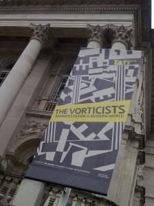 In the pic: facade of Tate Britain, with the promotional canvas dedicated to “the Vorticists”.