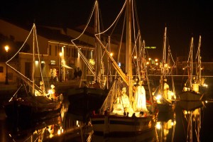 At Christmas time, from the first Sunday of December till the Epiphany, the boats of the floating section of the Marine Museum become the stage of the Marine Crib. The crib was created in 1986 and is the work of the artists Tinin Mantegazza, Maurizio Bertoni and Mino Savadori, from an original idea of Guerrino Gardini. The first statue sculpted was S. Giacomo, patron saint of Cesenatico, after that many other have been joined during the years. These are not only traditional statues, but characters inspired by the lives of ordinary people in a fishing village: fishermen, carpenters, puppeteers, fishmongers, a woman with the piadina (fleat bread), children and musicians.
