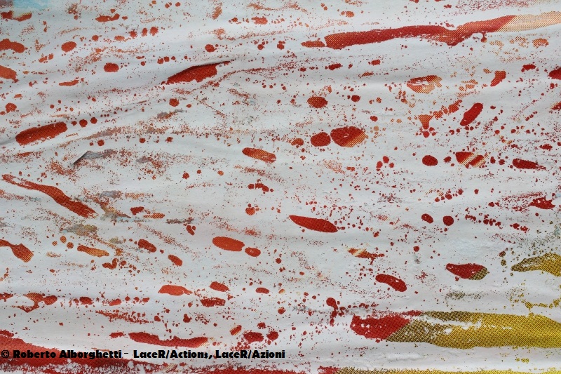 “LaceR/Actions”is a multidisciplinary project and research about urban signs and landscapes, especially concerning the apparent chaos of ripped papers from billboards and advertisings diplays. I have so far collected more than 35.000 images. Impressed by photocamera and transferred on canvas, reproduced on lithographs or textiles (as pure silk), or scanned in a video clip, the details of torn posters give new life to paper lacerations. I think in the lacerated advertisings is recognizable the “unwrapped” city, self-destroying in the messages, self-regenerating and self-reproducing in new visual elements, often contradictory, dissonant, discordant, but still surprisingly vital.