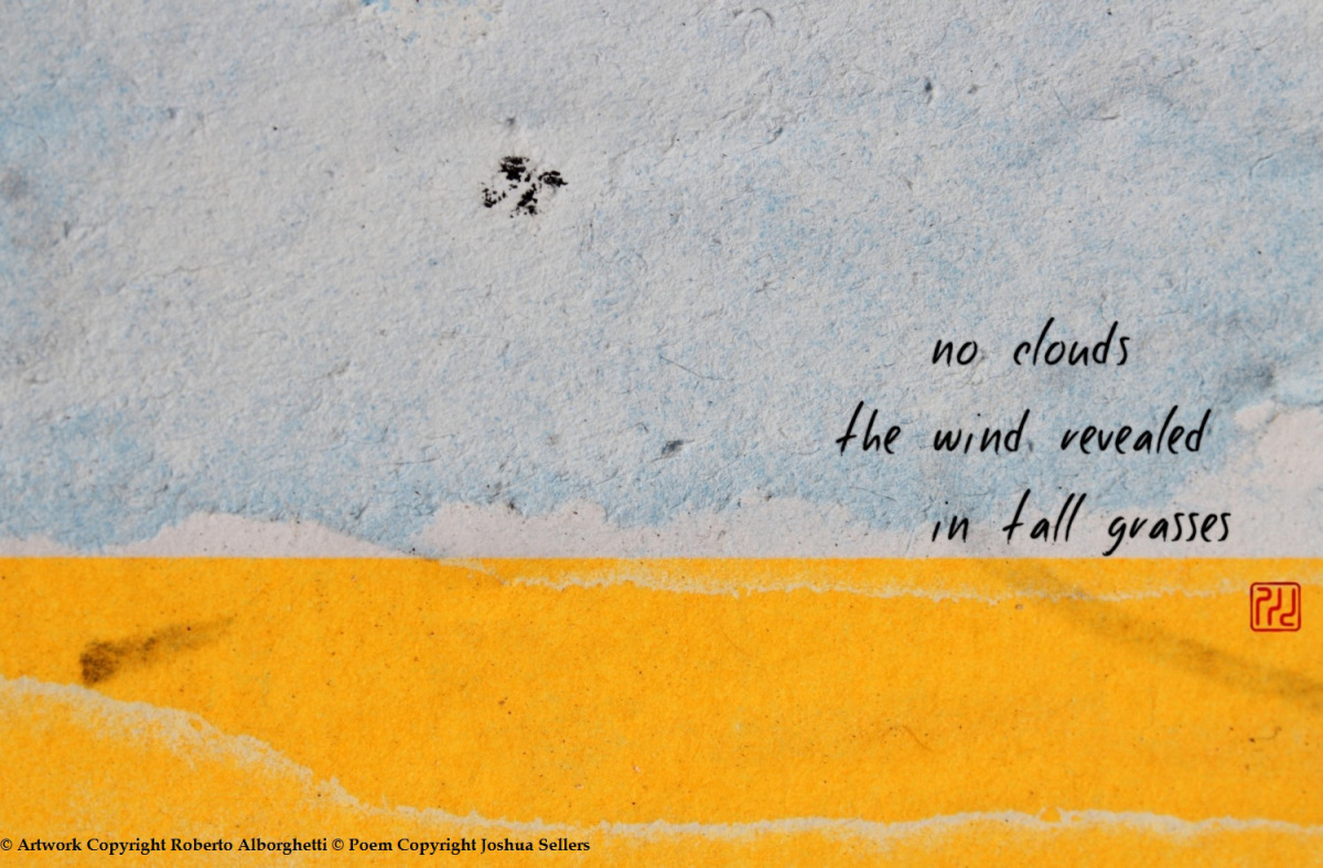 “No clouds” is part of my collaboration with musician, producer and poet Joshua Sellers, from West Memphis (Arkansas, USA). Fusing Joshua ‘s words with my images – realistic pics of torn and decomposed publicity posters, natural cracks, scratches and urban signs – , we created a series of haiga: a combination of haiku and visual art.