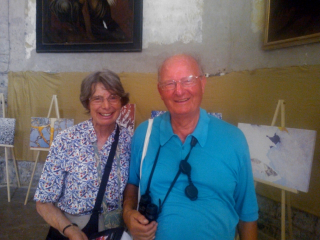 Scene n. 16 @ my #colorsofanapocalypseshow, Textile designer Bruno Boggia and daughter Lucia visiting the exhibit.