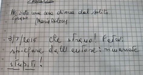 Scene n.10 @ my #colorsofanapocalypseshow, Visitors Book: “Dear Roberto, I want to say you that…”