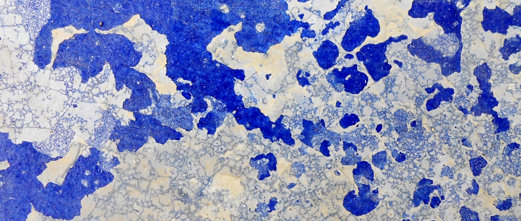 The blue ceramic, of which the structure was made, had undergone a process of deterioration caused by weather, moisture, salt and limestone. So, for my “Lacer/actions” project I produced several shots at the decomposed parts of the ceramic fountain that now, even through its alteration of colors and materials, does not hide colors and designs of great impact. I also produced a video, as you may see…
