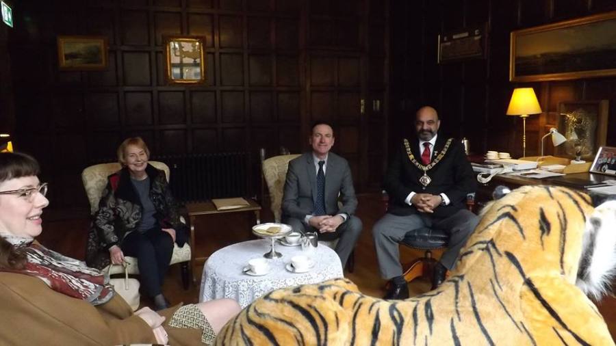 The GHOST BUS and Roberto returned on Friday for a series of presentations. The first showing took place at Nottingham City Council House (Members Lounge) after Roberto had the pleasure to meet and talk with the Lord Mayor of Nottingham, Councillor Mohammed Saghir, in his Parlour.