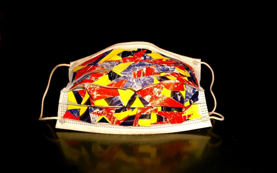 Da questi pensieri è nato questo progetto “Vorticism:Lockdown”. Mi sono tuffato nel vortice dei colori dei manifesti pubblicitari decomposti e corrotti, per trarre qualcosa di nuovo, qualcosa che aprisse le ali della speranza. Un manifesto pubblicitario strappato e logoro, scaduto nel suo messaggio, è l’immagine di questi tempi travolti dalla furia del virus. Io, innamorato del vorticismo, mi sono lasciato trasportare dal vortice di forme e colori. Ho de-strutturato strisce di carta straccia e le ho ri-strutturate in 3 piccole opere. Li chiamo collage. Ve li ho presentati, con immagini e videoclip. Oggi, il quarto lavoro rappresentata il simbolo di queste giornate di pandemia: la maschera protettiva, che ho immaginato nel design di un vortice di colori primari.