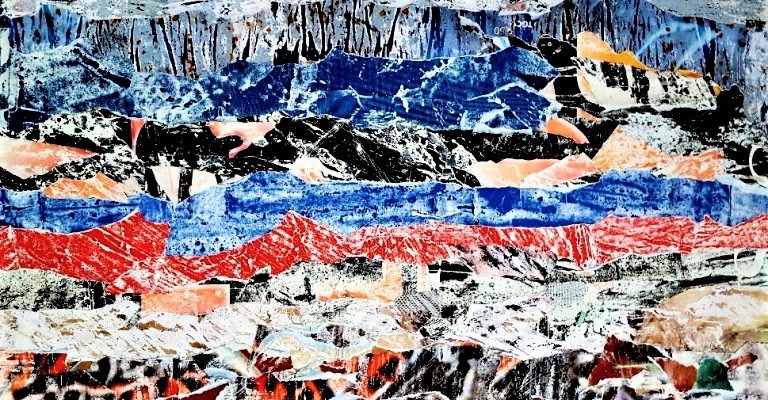 - “Memory Layers”, Collage made of waste paper of decomposed publicity posters, 72 x 52 cms. by Roberto Alborghetti. This artwork is not available. For infos: okayredazione@gmail.com
