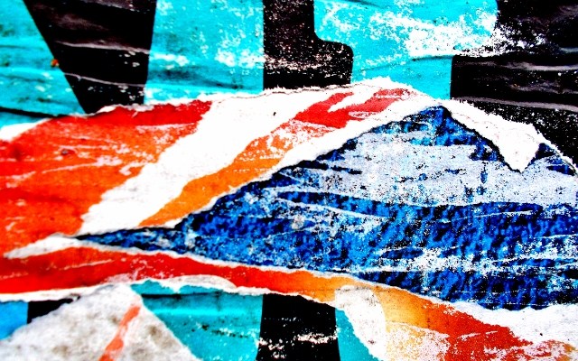 I manifesti pubblicitari lacerati e strappati che vediamo sui tabelloni all’aperto – e che sono tra i soggetti del mio progetto “Lacer/actions” – si prestano ad essere catalogati e ordinati secondo varie tipologie. Una è relativa alle “parole spezzate”, cioè la composizione casuale di lettere dovuta alla sovrapposizione dei vari strati di carta.