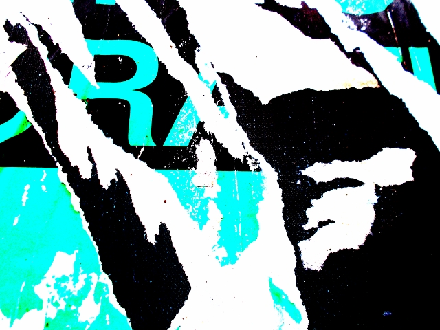 The torn advertising posters that we see on the outdoor billboards – which are among the subjects of my “Lacer/actions” project – lend themselves to being cataloged and sorted according to various types. One is related to the broken words, that is the composition of random letters due to the overlapping of the different layers of paper.