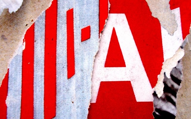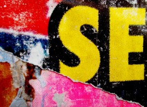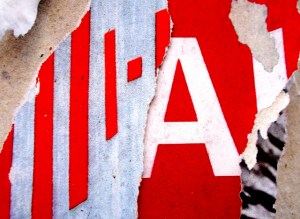 I manifesti pubblicitari lacerati e strappati che vediamo sui tabelloni all’aperto – e che sono tra i soggetti del mio progetto “Lacer/actions” – si prestano ad essere catalogati e ordinati secondo varie tipologie. Una è relativa alle “parole spezzate”, cioè la composizione casuale di lettere dovuta alla sovrapposizione dei vari strati di carta. Per una ragione assolutamente casuale e spontanea, strati di carta vanno ad affiancarsi e a sovrapporsi, componendo così scenari da arte contemporanea, gli stessi che erano stati composti manualmente su tela da artisti come Rotella e Villeglè. Qui invece è l’assoluta spontaneità della de-costruzione a dominare la scena e ad incantare gli occhi con una sorta di Babele fornata da lettere e parole. Affascinante e sorprendente, vero?