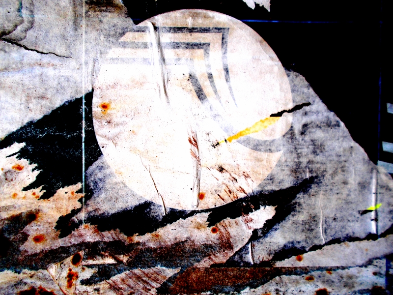 Un cono di luce? Una luna a mezzanotte? Una palla luminosa? Un oggetto volante non identificato? O qualcosa d’altro? La realtà non è mai come sembra. E’ la macrofotografia della carta lacerata e deturpata di un manifesto pubblicitario su di un cartellone all’esterno. Per il progetto “Lacer/azioni”.