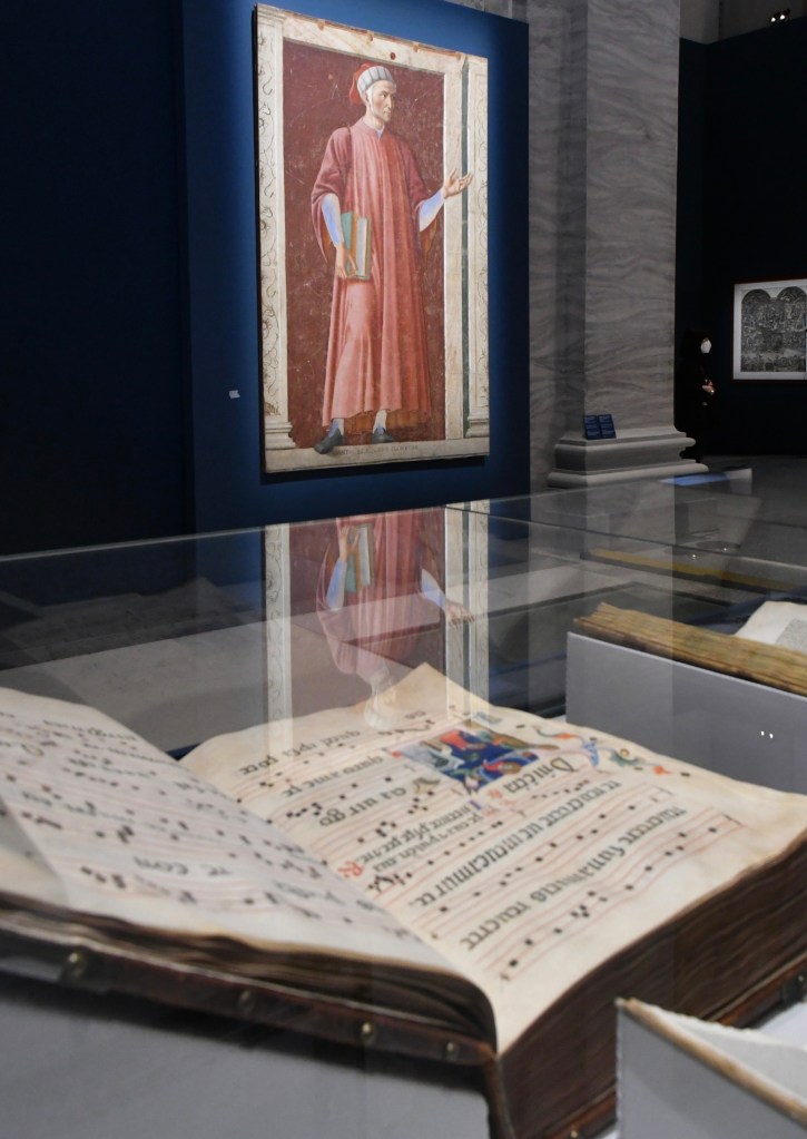 A real catalog of masterpieces, coming from the greatest museums in the world, where Cimabue, Giotto, Lorenzetti, Andrea del Castagno, Beato Angelico, Botticelli, Signorelli, Beccafumi, Michelangelo, Lorenzo Lotto, Tintoretto, Brueghel the Elder met, Guido Reni, Canova, Bouguereau, Picasso, Arnolfo di Cambio. Among the manuscripts of the ancient vulgate Pacino da Buonaguida and Niccolò di ser Sozzo, among the sources of Dante Le Roman de la Rosee the Liber figurarum by Gioachino da Fiore; then the first printed editions. The relationship between Dante and the Nazarenes told by Anton Koch and Vogel von Vogelstein. The new editions and graphics that made Dante universal with Flaxman, Dixon, Giani, Sabatelli, Corot, Dorè, Nattini. And then the generation of Dante painters between the nineteenth and twentieth centuries.