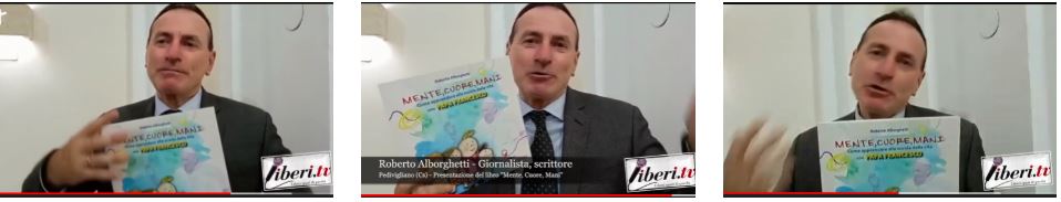 Grande l’interesse dei media per l’uscita del libro “MENTE, CUORE, MANI“, scritto daRoberto Alborghetti, il primo “librattivo” che racconta Papa Francesco a bambini e ragazzi. Pubblicato da Funtasy Editrice, è una novità assoluta per il panorama editoriale. E’ una pubblicazione che interessa scuole, associazioni, gruppi culturali, parrocchie, oratori, famiglie. AncheLiberi web TVha intervistato Roberto Alborghetti che racconta come è nato e come si sviluppa il contenuto del libro. L’intervista è stata realizzata daPasquale Taverna. Ecco il link che vi porta alla video-intervista nel canale YouTube diLiberi TV:https://youtu.be/AZeoXIUEwFU