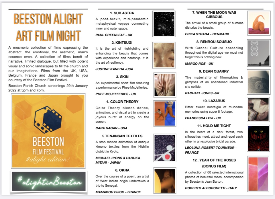 THE POSTER WITH THE SCREENING PROGRAM AT THE BEESTON LIGHT NIGHT