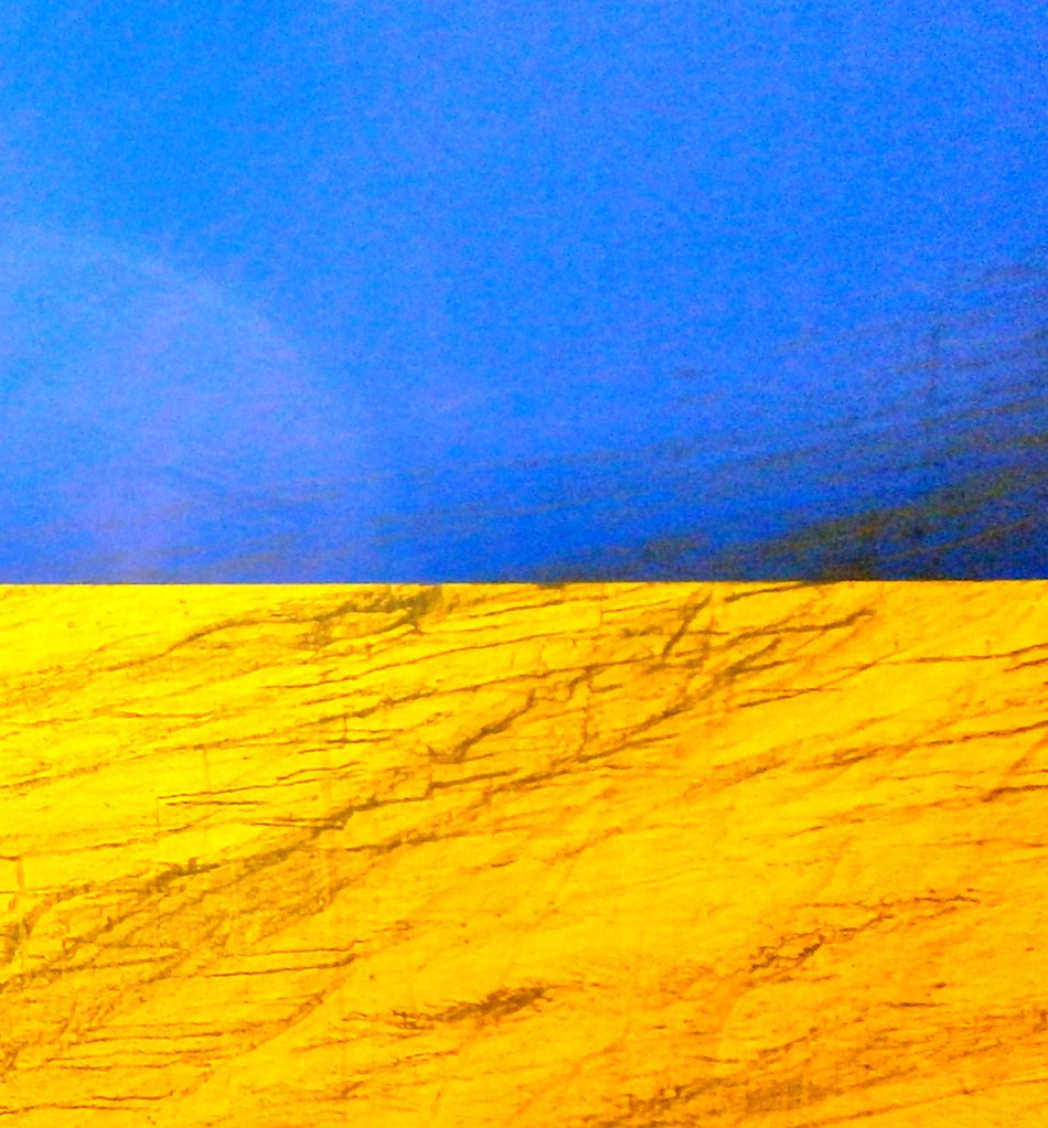 Let’s make the colors of Ukraine fly overhead, in all ways, in a message calling on Putin’s Russia to stop the war and the invasion of a sovereign Nation. As in this macro photography I took in the Netherland, at Eindhoven station: it refers to the side of a train carriage (“Lacer/actions project”).