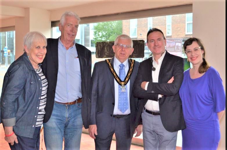 13.00 >Roberto, William, Marysia Zipser + Christopher Frost/The Beestonian magazine, Lamar Francois – Nottingham Pilgrimage via Beeston tram > Nottingham City Square > Robin Hood Statue – meeting Lord Mayor of Nottingham, Cllr David Trimble > brief visit to Nottingham Castle Rebellion Room & Art Museum Long Hall.