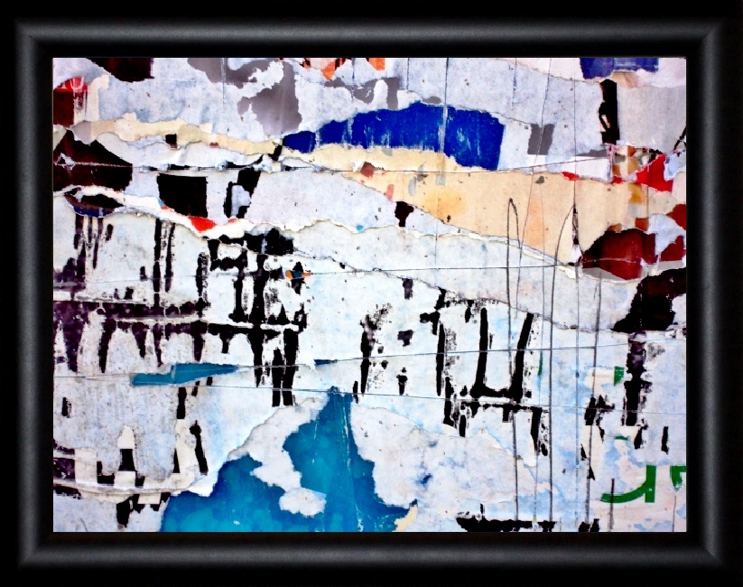 Del resto, i manifesti pubblicitari hanno sempre catturato l’attenzione degli artisti moderni. Rotella e Villeglè che cosa facevano? Li strappano dai cartelloni e li ricomponevano su tela. Io ho scelto un percorso più semplice ed immediato: documentarli attraverso fotografie o macro fotografie. Ho sempre voluto mostrare la realtà così come appare sotto gli occhi. Del resto, non dimentichiamolo, è la realtà ad ispirare tutti i grandi artisti della modernità. Carta lacerata e sporca, crepe, graffi, corrosioni e materiali decomposti ci offrono squarci e colori che davvero meritano di essere messi in cronice. E così appunto sto facendo in questo gioco di collocare le fotografice all’interno di un quadro. Dunque, benvenuti alla mia personale Gallleria d’arte eccezionalmente aperta per tutta l’estate 2022!