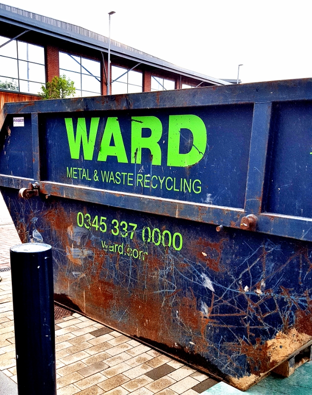 Even on my last visit to Beeston, a city that borders Nottingham, I discovered something interesting that caught my attention and my eyes. Here, where The Ghost Bus project was born, I came across, last spring, not a car or a bus of public transport, but a large container of waste and building materials (“Ward, Metal & Waste Recycling”)..