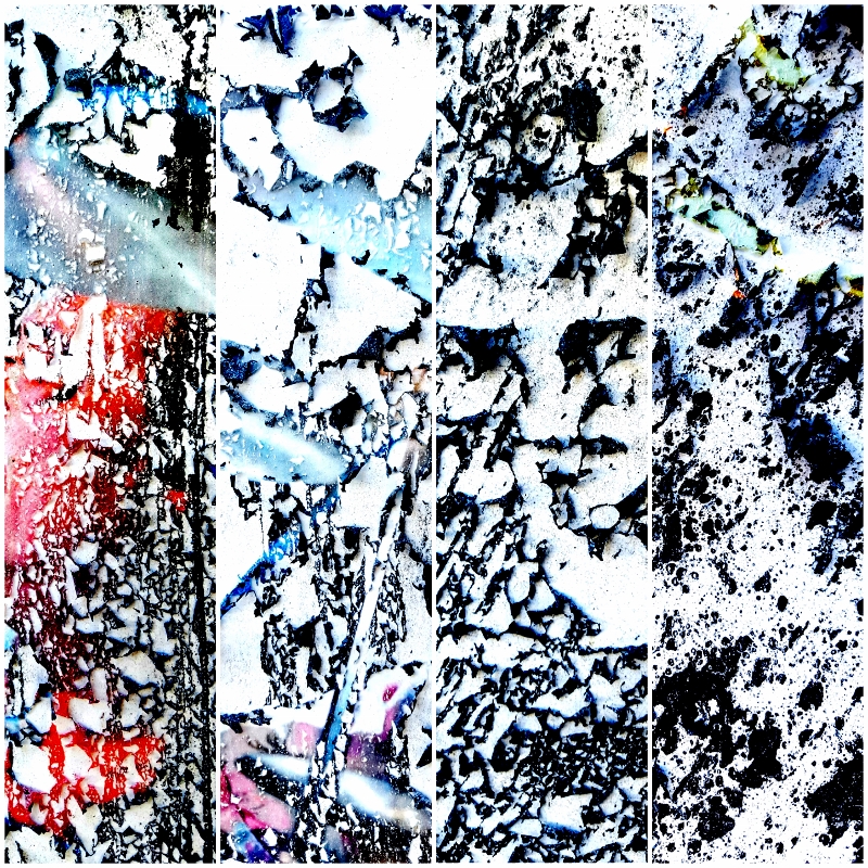 In the photos: cracks and scratches on walls, paints, surfaces of various materials, papers of decomposed publicity posters on billboards. The photographs or macro-photographs of the “Lacer/actions” project are not manipulated or enhanced with digital systems or softwares.