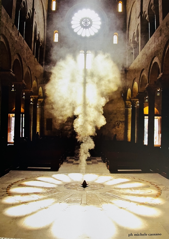 Michele tells me: “The discovery dates back to 2005, after the restoration works that took place between 2002 and 2005. The then archbishop of Bari-Bitonto, Francesco Cacucci, wanted a new arrangement of the pews to make visible the beautiful mosaic rose window at the foot of the ‘altar, placed in the XIII at the behest of Archbishop Landolfo. I was on the ambo preparing the lectionary for the evening mass. The church was deserted and illuminated by the sun. There was only mgr. Ignazio Fraccalvieri, canon and penitentiary. On that afternoon, which will remain etched in my memory forever, I observed something incredible: the shape of the rose window on the façade, thanks to the sun’s rays, was drawn on the mosaic of the floor, which has the same shapes and dimensions as the rose window. I felt a huge emotion. And the phenomenon, also thanks to the photographer Beppe Gernone and my colleague Michele Morga, was gradually documented, year after year. And it is renewed punctually, every 21 June, at 17:10!”.