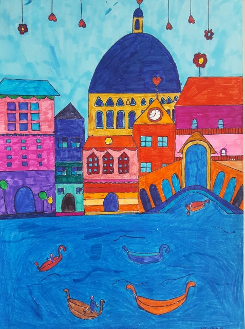 How joyful Venice is. It is almost a phrase that arises spontaneously when admiring the beautiful drawings dedicated to the Serenissima city by the students of the secondary school of the Prestino-Breccia Comprehensive Institute in Como directed by Prof. Simona Convenga. With the guidance of professor Raffaella Riva, the students wanted to pay homage to the lagoon city known throughout the world for its artistic beauties. The drawings offer us a colorful and suggestive scenario. Our congratulations to the IC Como which has shown creativity and commitment in this graphic initiative as well.