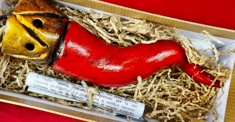 It is the so-called good luck charm par excellence. And for Naples it is one of the distinctive signs of the city. It is the red horn (corno or cornetto) : the “curniciello”, as they say under the Vesuvius. Born in the mists of time from myths and legends, the little red horn is traditionally recognized as an emblem of prosperity, good luck, fertility (for humans and for the earth). It seems that its “fame” dates back to the Neolithic, when animal horns were considered a symbol of physical strength and carriers of positive energy.