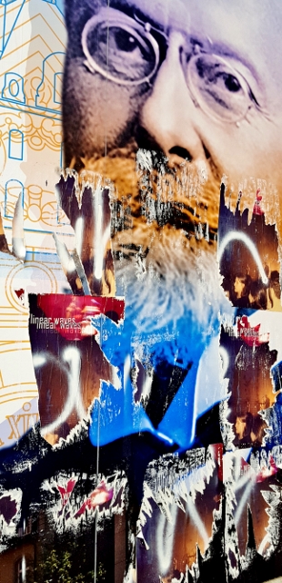 La prima immagine è piuttosto singolare. Si riferisce agli strappi su un poster celebrativo di un grande protagonista della cultura lussemburghese: Sostthène Weis, artista ed architetto (ha progettato alcuni degli edifici più imponenti del Gran Ducato del Lussemburgo).