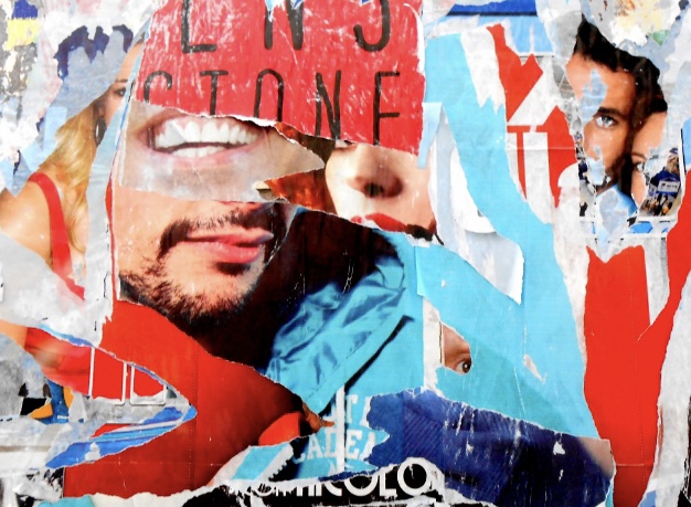 We often recognize a face, but we no longer know how to give it a name. And how many times do we hear a name ring out and no longer know how to give it a face! Photographic image of a torn and decomposed poster on a billboard in Rome.