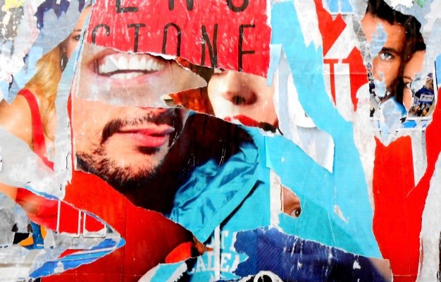 Spesso si riconosce un volto, ma non sappiamo più dargli un nome. E quante volte sentiamo risuonare un nome e non sappiamo più dargli un volto! Immagine fotografica di un manifesto stracciato e decomposto su un tabellone pubblicitario a Roma.