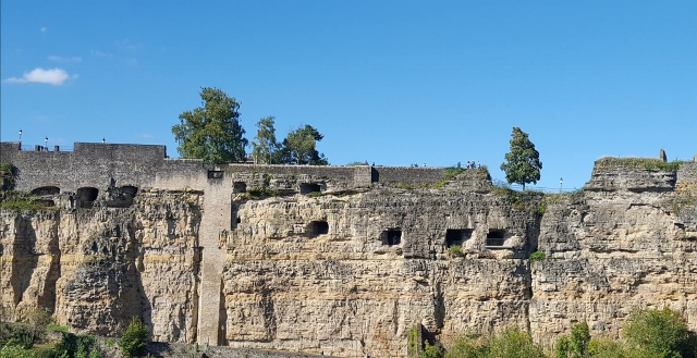 The Bock Casemates can also be admired from the outside. The most interesting observation point is from the Grund district, which in itself is worth a visit for the suggestive complex of Neimënster Abbey. The great rock wall rises in all its dizzying grandeur. An impregnable natural fortress, which allowed the Vieille Ville to resist every attack, by men and time.