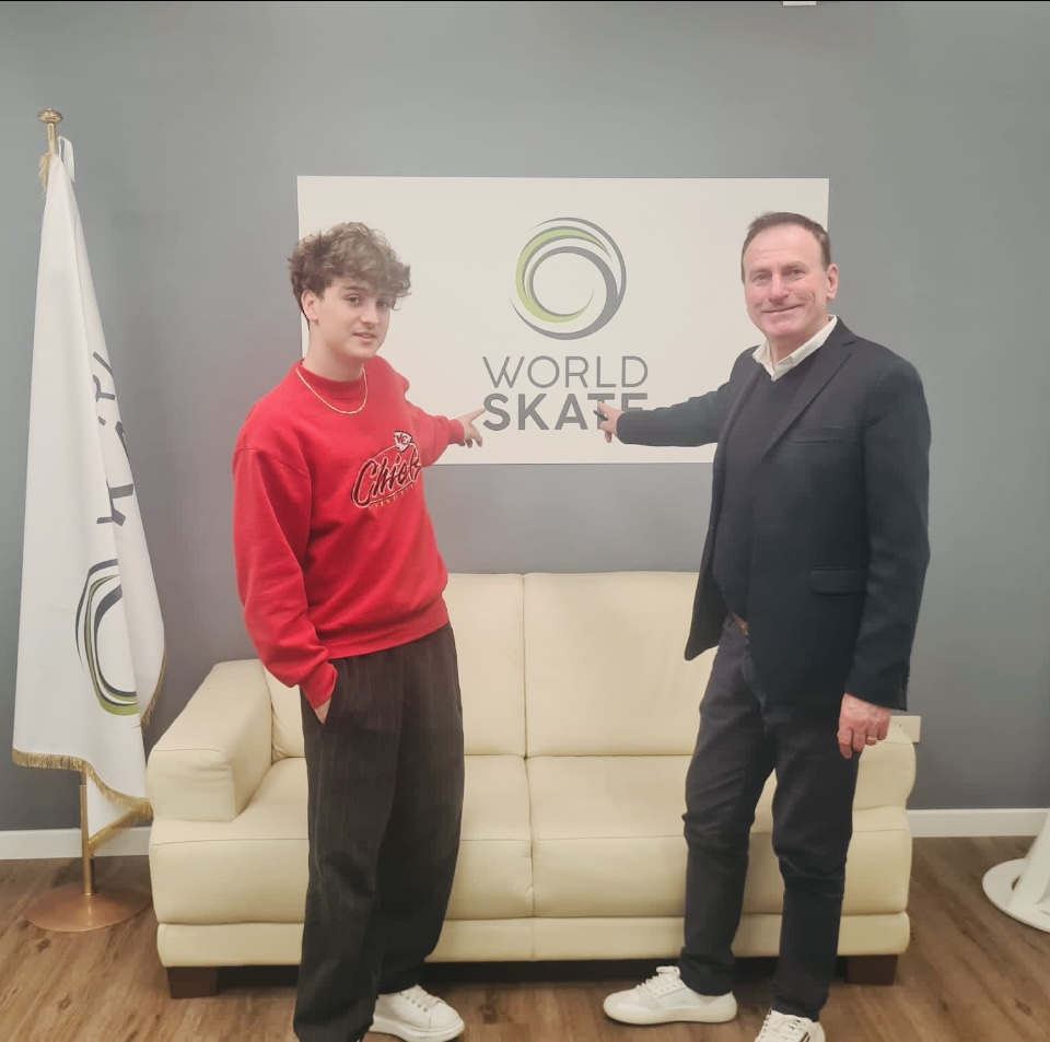 Everyone on wheels today! It is in fact “World Skate Day” announced worldwide to celebrate 100 years of the World Skate foundation. In the photo, with me, is Alessandro Mazzara, international skateboarding champion, met at the national headquarters of the FISR (Italian Roller Sports Federation) in Rome. Alessandro, together with the artistic roller skating champion, Gioia Fiori, helped me enter the world of roller sports which I described in the book “Sogni, Brividi e Rotelle”, with illustrations by Eleonora Moretti, published by Funtasy Editrice with FISR – Italian Roller Sports and Sports and Health Federation. The book features the presentation by Sabatino Aracu, National President of FISR and International President of World Skate.