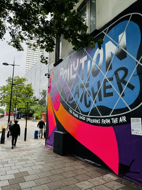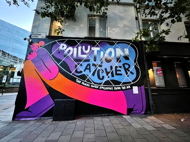 “In questo momento ti trovi in una delle zone più congestionate di Londra”. Queste parole sono scritte in stampatello su un foglio incollato al muro, in un punto di Euston Road, a London. Alzo gli occhi e vedo che accompagnano e spiegano un grande murale colorato. Osservo, leggo e scopro che mi trovo davanti a qualcosa di interessante. Il testo scritto sul foglio bianco riporta che: “per aiutare a pulire l’aria di questo luogo e aumentare la consapevolezza del problema dell’inquinamento che stiamo vedendo a livello globale, abbiamo creato questo murale che ha uno speciale potere di aspirazione dell’inquinamento. Il rivestimento CleanAir di Resysten può ridurre i livelli di NOx fino al 73% se applicato su cemento e mattoni. Questo il procedimento scientifico: quando la luce colpisce il suo ingrediente principale, il biossido di titanio, divide l’acqua e l’ossigeno dall’aria in particelle che scompongono i gas nocivi attraverso una reazione chimica”.