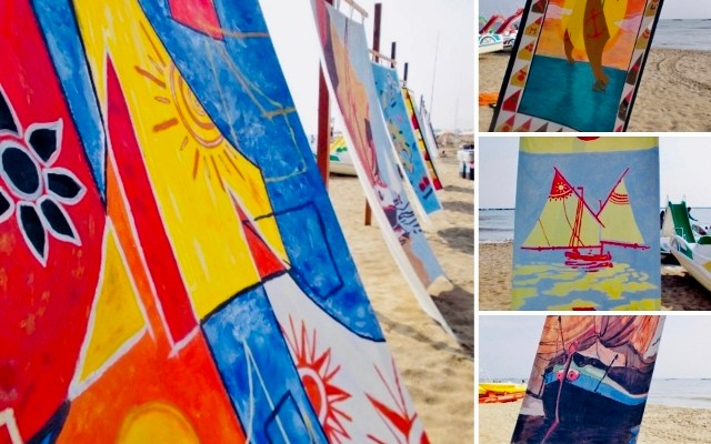 This year, the public beach in Piazza Costa in Cesenatico will once again host “Tende al mare” (Sunshelters by the sea) the original art exhibition founded in the summer of 1998 by Nobel Prize winner Dario Fo and a partnership with the Emilia-Romagna Region’s Institute for Cultural Heritage. Now in its 28th year, the exhibition is now considered one of the most interesting and original outdoor art events. “Vele al Terzo: i colori dell’Adriatico” (Sails on the Third: the Colors of the Adriatic) is the theme students from the Ravenna Academy of Fine Arts explored in creating the tents. In addition to the Academy’s sixteen paintings, four more were created by residents of the La Nuova Famiglia Onlus Cesenatico Socio-Occupational Center. The tents are open daily until September 7, 2025. #visitcesenatico #tendealmare #romagna