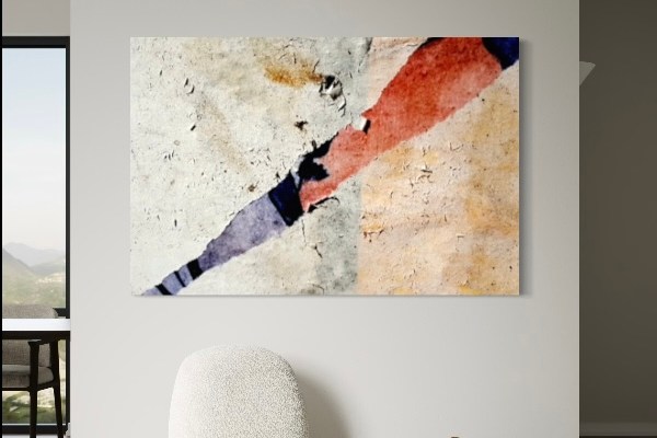 How might the photographic images I took for my project “Lacer/azioni” appear inside a house or a studio? Technology can help us imagine an answer to the question. In this series of images, here are some solutions. I think it is curious to think of placing, as furnishing accessories, photographs that I took in front of walls, along city streets, where I go in search of decomposed paper of advertising posters, cracks, corrosions, scratches and various deteriorations of urban materials. The image that became artwork for the wall of a living room is completely random and has not been digitally manipulated or improved. Reproduced on different media, it could be “an unmistakable complement of interior design and decoration”.