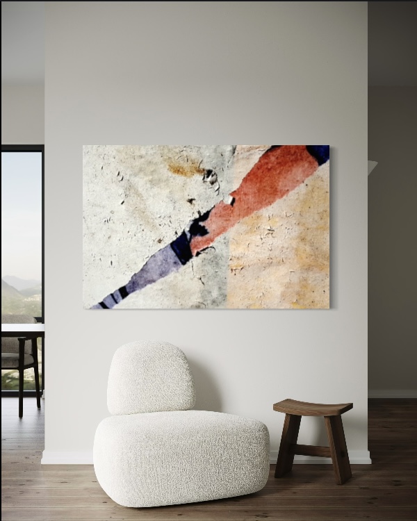 Come potrebbero apparire, nell’interno di una casa o di uno studio, le immagini fotografiche che ho scattato per il mio progetto “Lacer/azioni”?. La tecnologia può darci una mano nell’immaginare una risposta. In questa serie di immagini, ecco presentate alcune soluzioni. Penso sia curioso pensare di posizionare, come complementi di arredo, fotografie che ho scattato davanti ai muri, lungo le strade delle città, dove vado in cerca di carta decomposta di manifesti pubblicitari, crepe, corrosioni, graffi e vari deterioramenti di materiali urbani. L’immagine diventata quadro per la parete di un living room è del tutto casuale e non è stata manipolata o migliorata digitalmente. Riprodotta su diversi supporti, può diventare “un inconfondibile complemento di interior design ed arredo”.