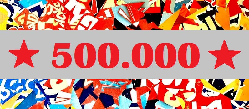 Thanks a lot to all of you for stopping by my WordPress site http://www.robertoalborghetti.com – The statistics counter, a few minutes ago, marked the milestone of 500,000! It is a wonderful result. These are beautiful numbers for which I thank you infinitely. Numbers are never “numbers”, especially when it comes to people. They always represent experiences, moments, ideas, realities and, above all, people. So, thank you so much indeed! I want to thank all of you do it with my new collage artwork, entitled “BABEL”. It’all made with little pieces of waste paper of publicity posters. This artwork represents part of my project-research through the surprising dimension of the decomposition of materials, paper, images that tell urban and industrial signs, cracks, scratches, corrosion and natural decomposition. Thank you very much for your attention and and enjoy the journey!