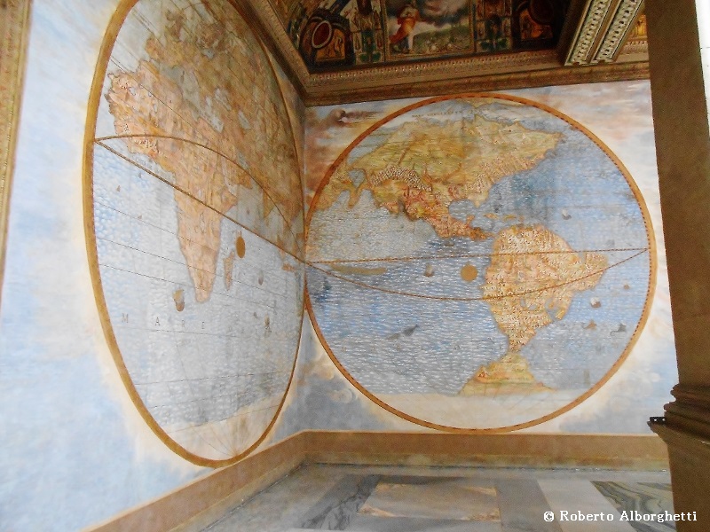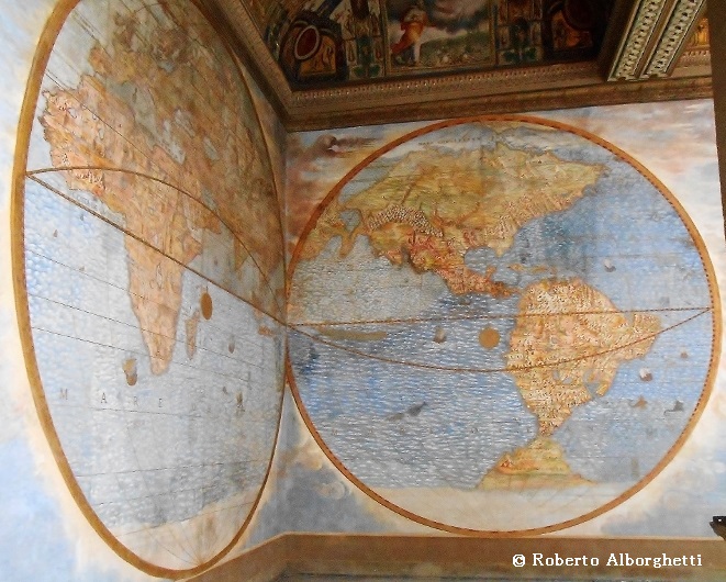 Terza Loggia (Third Loggia) is another stunning place in the Apostolic Palace in Vatican City, Rome. On its walls we admire maps of the modern world painted between 1560 and 1585. They include the wonderful Emispheres, the frescoes designed by Ignazio Danti (1582 ca). I recently had the opportunity to visit Terza Loggia (I was in Rome to meet Pope Francis for the presentation of “Francis”, the illustrated and historical biography I wrote about him). I’m so glad to share some pics and news I found in a very interesting research by Francesca Fiorani (“Cycles of Painted Maps in the Renaissance”).